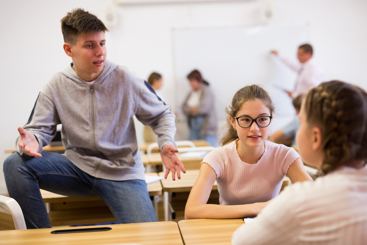 Olivier Fourrier, enseignant d’histoire-géographie, explique sa méthode pour enseigner l’EMC, sous forme de débat démocratique. Image : Getty