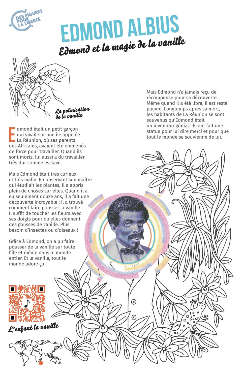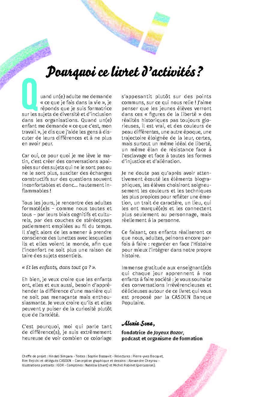 • Un carnet d’activités avec des coloriages, des histoires et des comptines autour de 8 figures de la Liberté ( exemple : https://www.vousnousils.fr/lenfant-la-vanille-reunion)