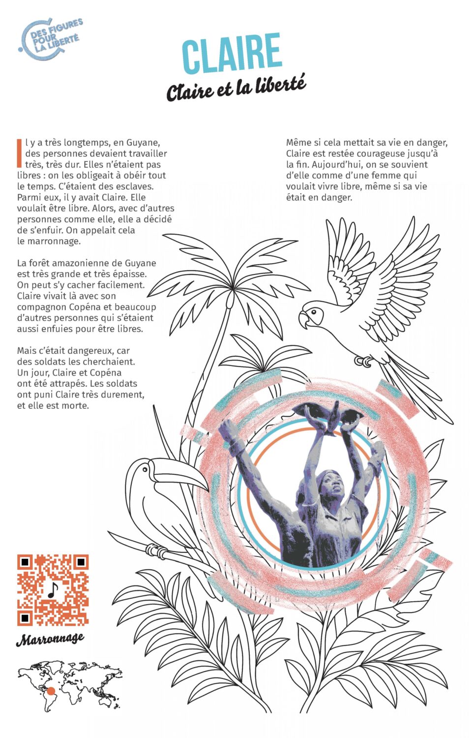- Chaque affiche présente une figure emblématique de la résistance à l’esclavage
